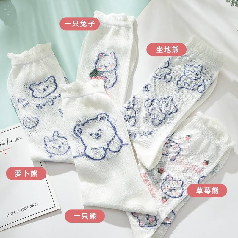 袜子女中筒袜ins潮夏季薄款网眼镂空透气日系可爱风春秋全棉长袜