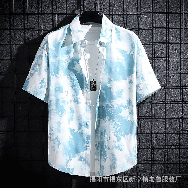 短袖衬衫印花衬衫男沙滩衬衫夏季薄款休闲衬衣韩版袖修身翠花上衣 99.00 已售:0件