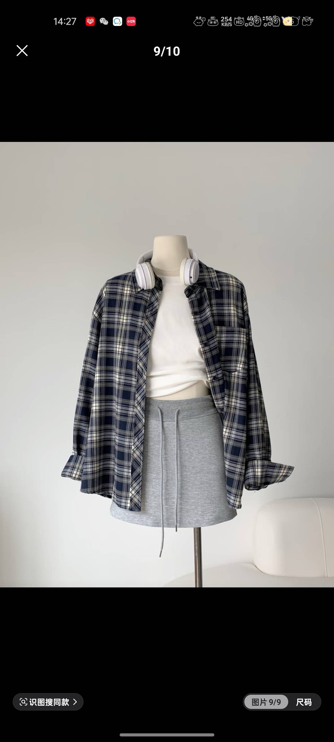 美式复古oversize宽松格子衬衫外套式女春秋设计感小众1965