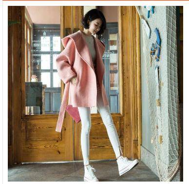 18冬新款韩版短款双面羊绒大衣女夹克雾霾蓝毛呢大衣外套 659.00 已售:0件