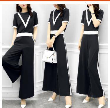 018春夏装新款韩版大码阔腿裤套装女装宽松休闲名媛短袖两件套女 219.00 已售:0件