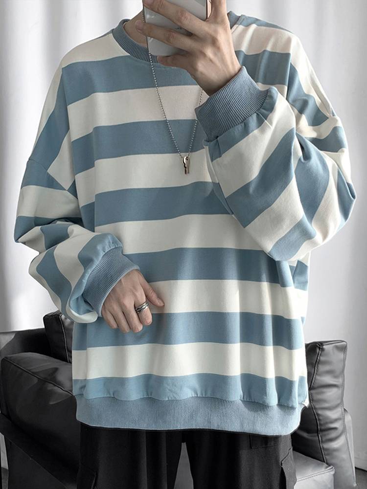 男装韩版ins条纹卫衣秋季情侣百搭圆领宽松外套潮流厚款上衣