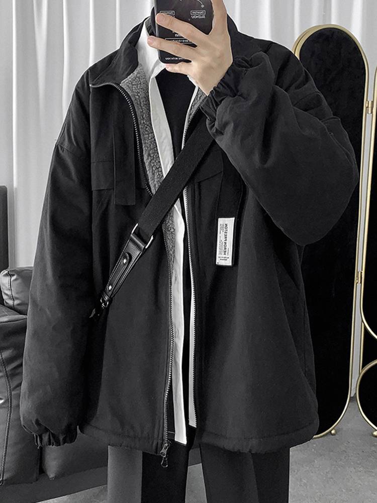 男装潮牌工装棉服冬季羊羔毛加绒加厚棉袄韩版宽松棉衣外套男