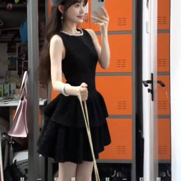 镶钻细闪无袖背心连衣裙女2025夏季新款法式千金生日礼服裙小黑裙 49.80 已售:1件