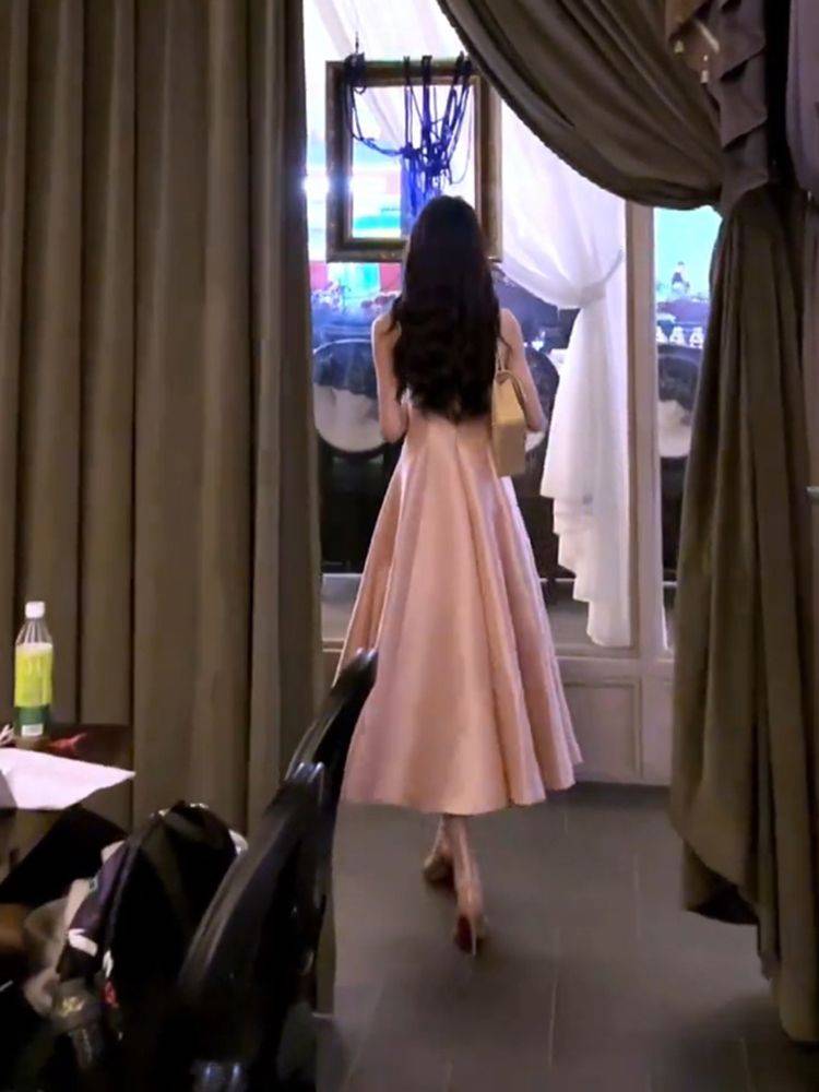 法式高级气质设计礼服连衣裙2025夏季新款收腰显瘦公主粉色连衣裙 48.88 已售:1件