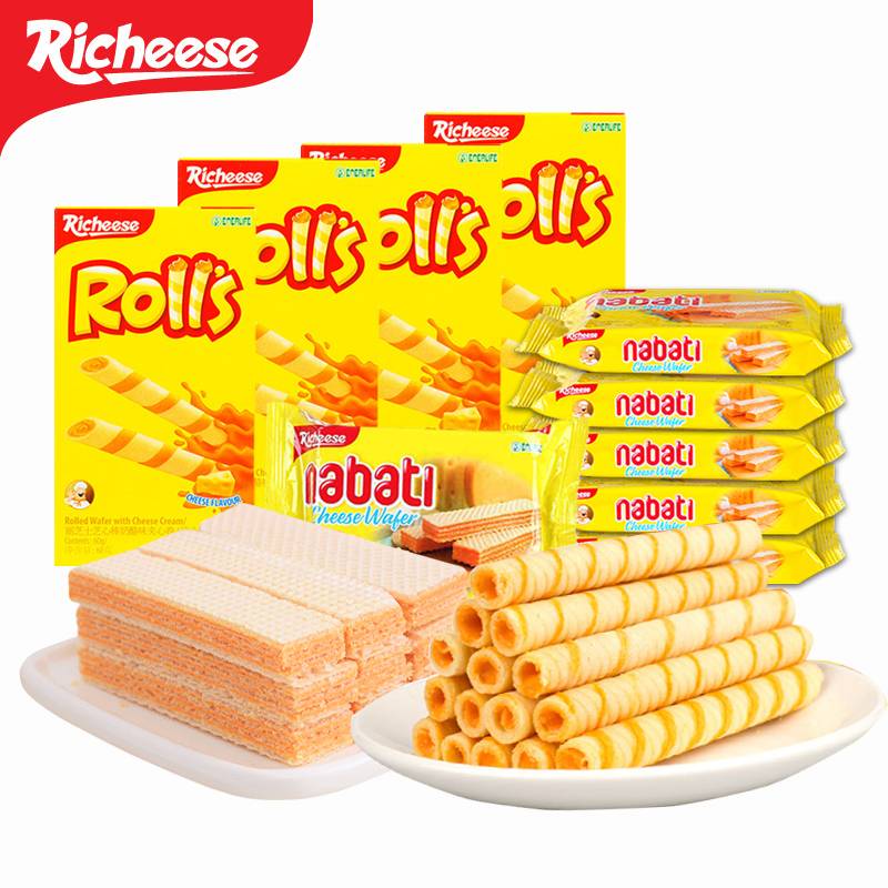 印尼进口丽芝士奶酪味威化夹心饼干玉米棒芝心棒组合装零食大礼包