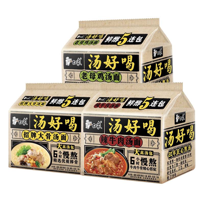 白象汤好喝方便面老母鸡汤面5连包招牌大骨汤面辣牛肉汤面泡面条