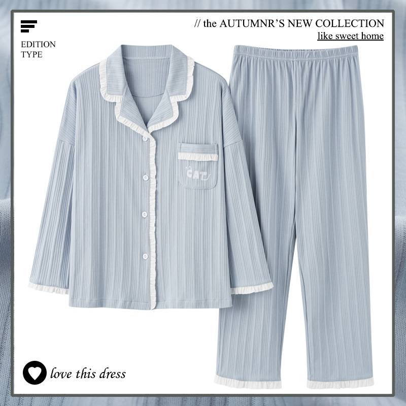 睡衣女春秋款纯棉长袖全棉甜美2021年新款秋冬季薄款家居服套装