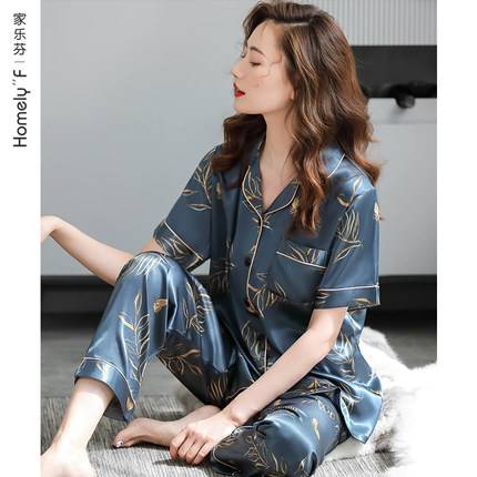 睡衣女士夏季丝绸冰丝短袖长裤家居服夏天薄款仿真丝