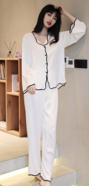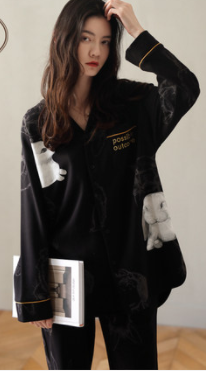 睡衣女士春夏季夏天丝绸冰丝长袖家居服春秋款薄款仿真丝大码套装