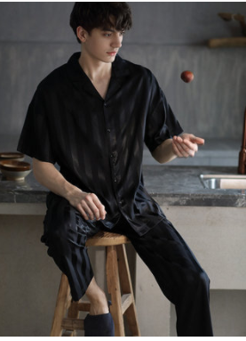 男士冰丝睡衣男夏季家居服情侣薄款仿真丝绸两件套