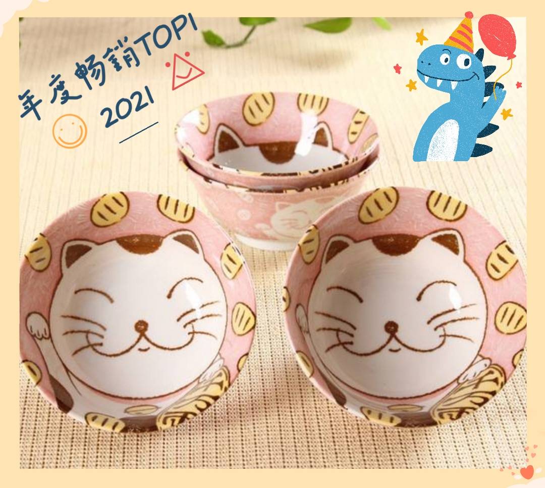 日本进口创意卡通陶瓷碗釉下彩可爱招财猫多用米饭深碗套装餐具