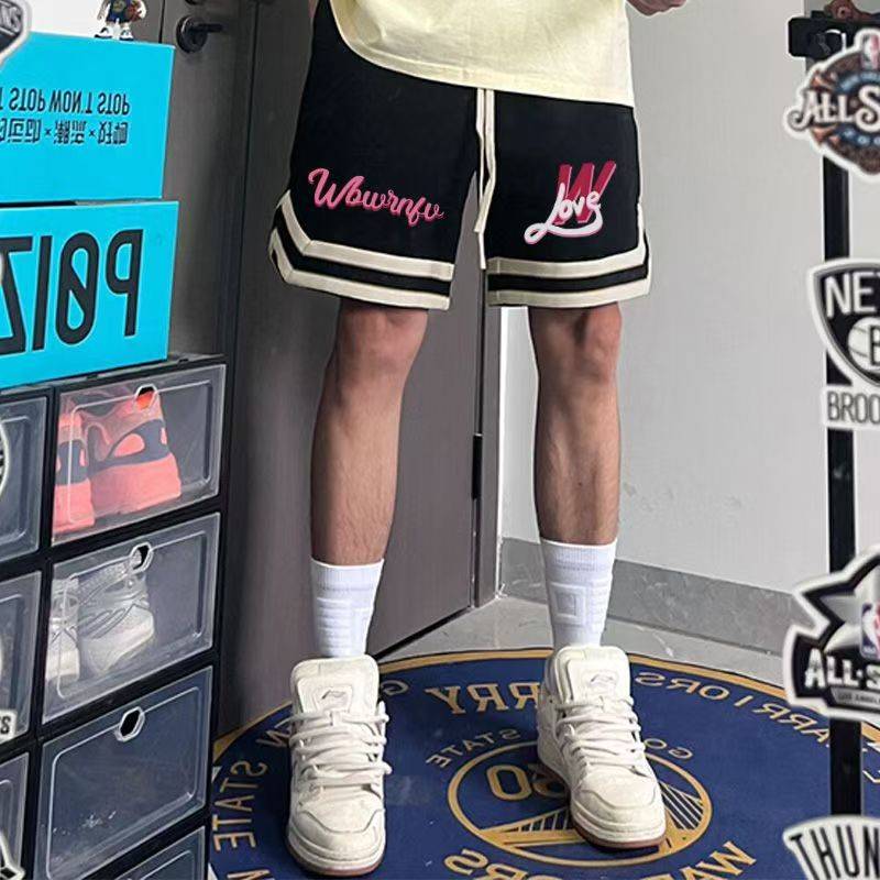 夏季美式宽松高街百搭抽绳字母五分裤男休闲篮球潮牌印花运动短裤
