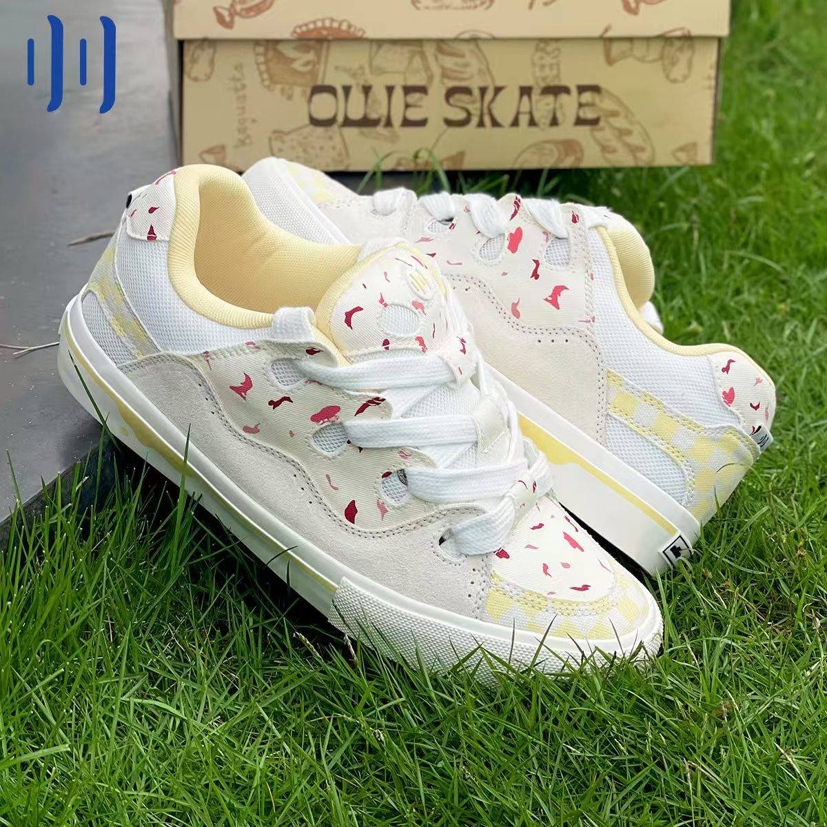 顽刻ollieskate面包鞋蔓越莓白巧配色复古低帮BAKE男女国潮滑板鞋