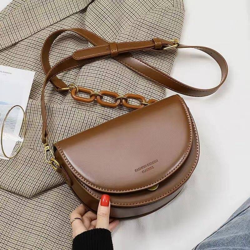 真皮包包女2024新款潮斜挎包女包时尚高级感单肩马鞍包ins小包包