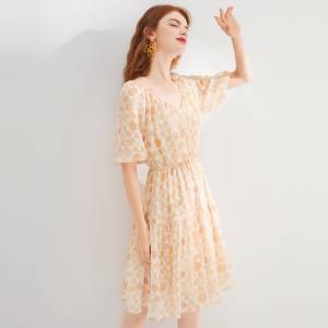 法式复古时尚连衣裙2020夏季新款女装气质百搭收腰显瘦印花裙子女