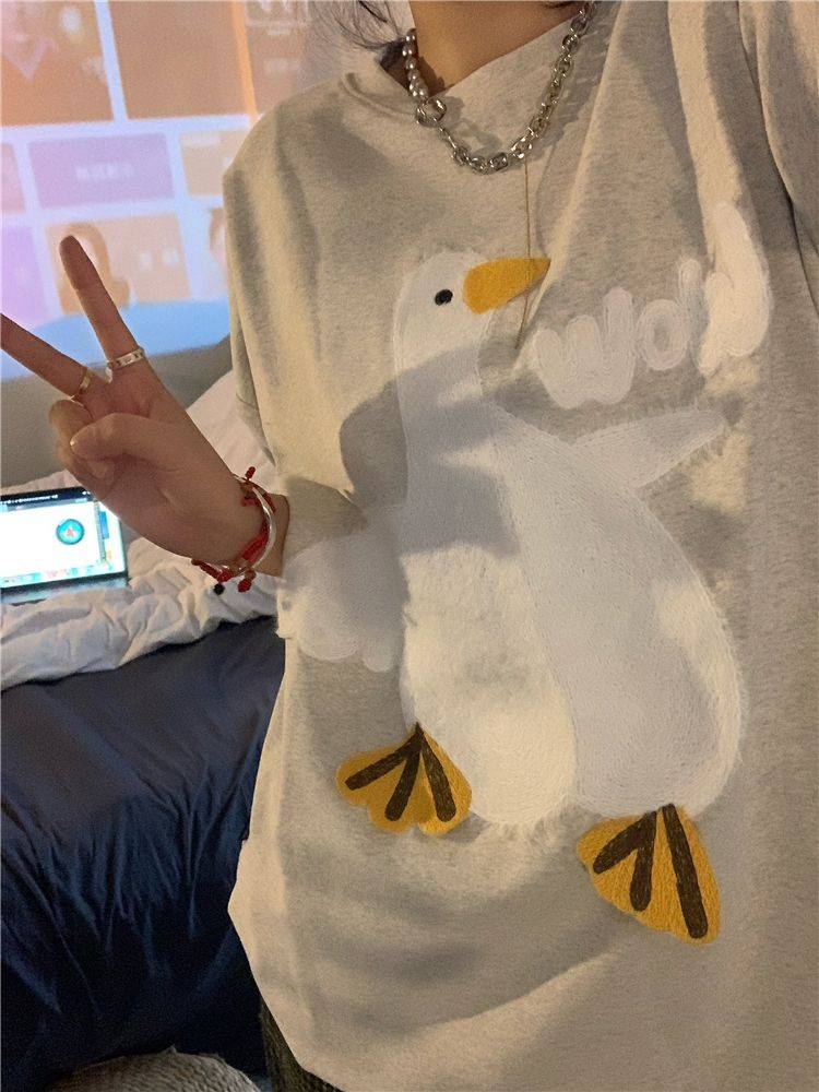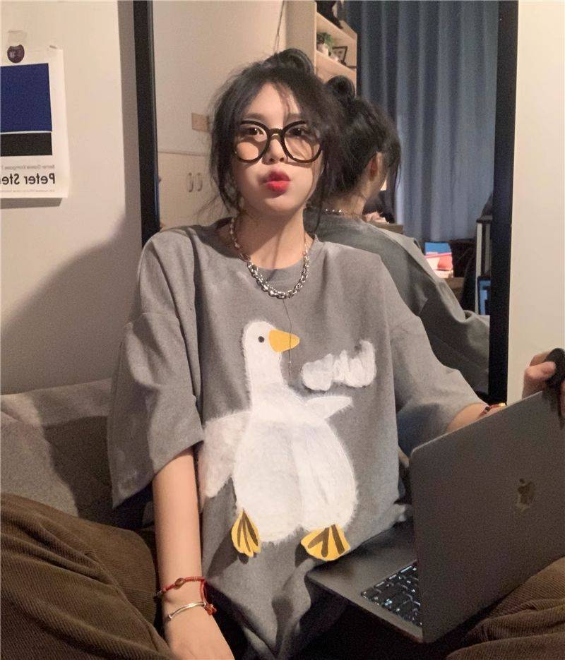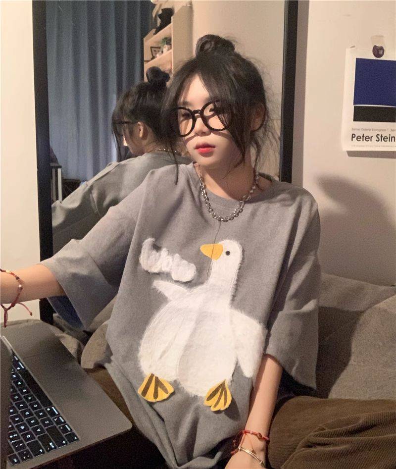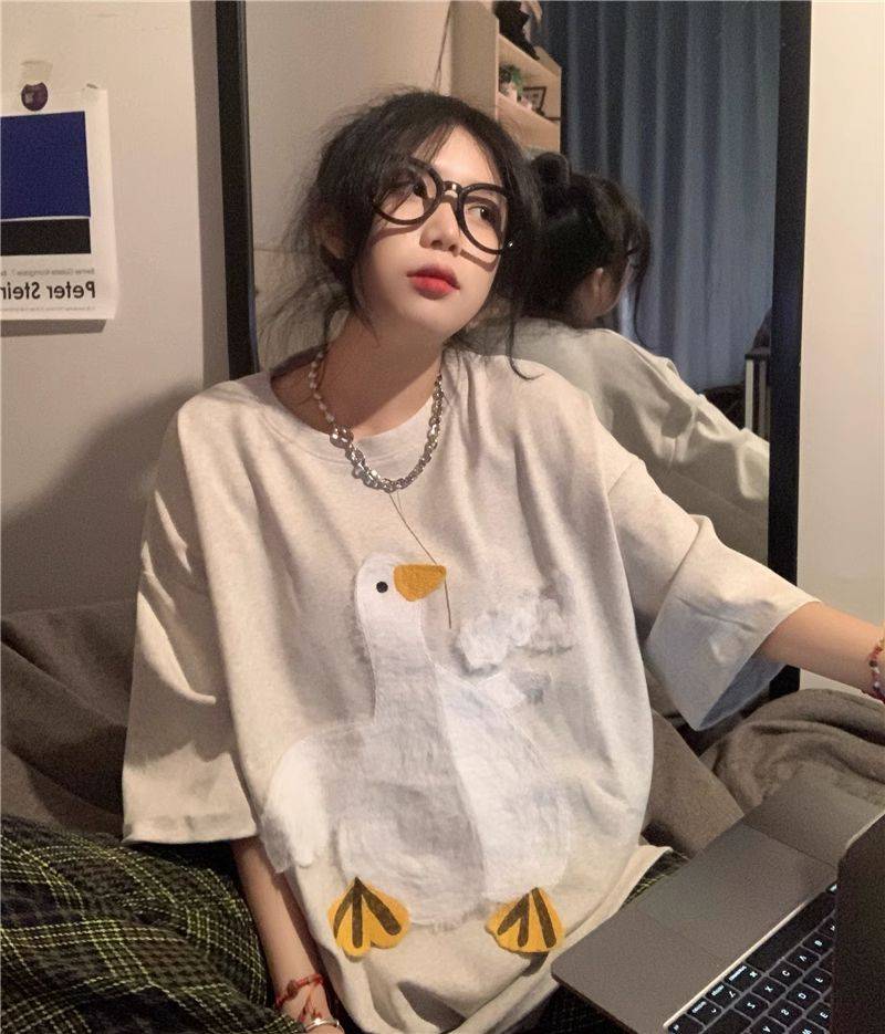 大白鹅可爱上衣潮牌小众设计感短袖T恤情侣夏