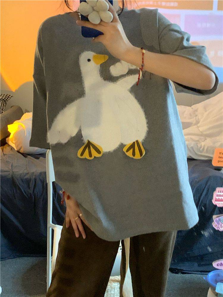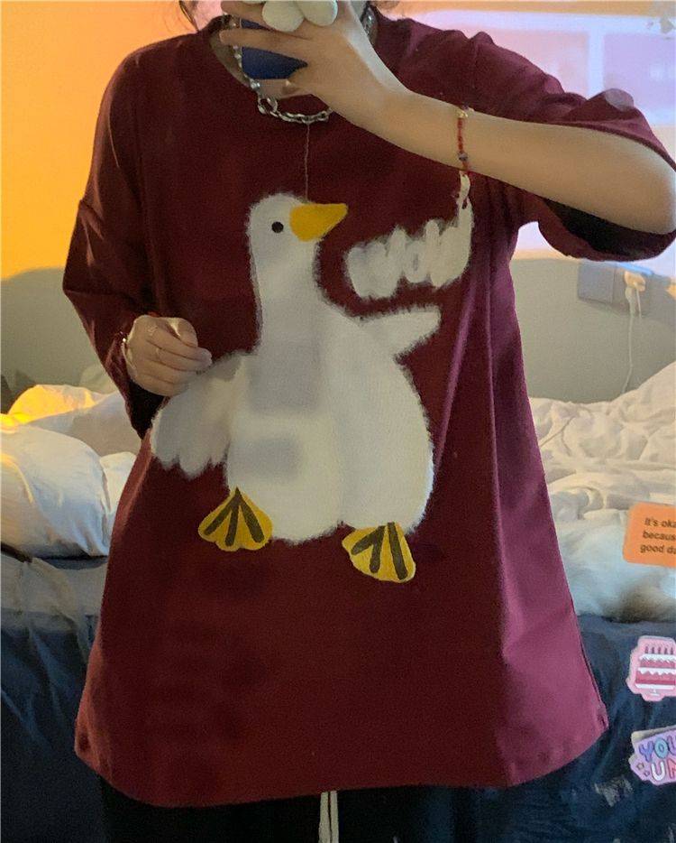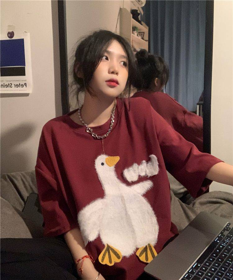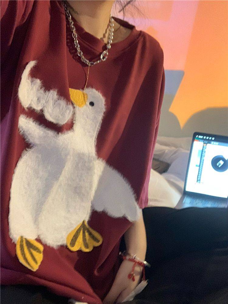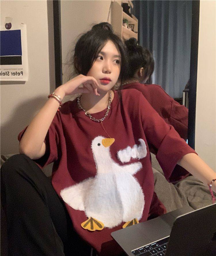 大白鹅可爱上衣潮牌小众设计感短袖T恤情侣夏