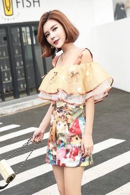 夏季新款泰国潮牌荷叶边海边度假印花吊带连体裤短裤可爱两件套装 211.00 已售:0件
