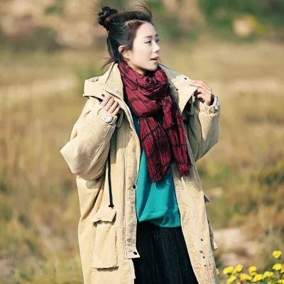 微笑向暖2016冬装复古灯芯绒加厚棉服连帽大外套中长款纯色棉衣女 211.00 已售:0件