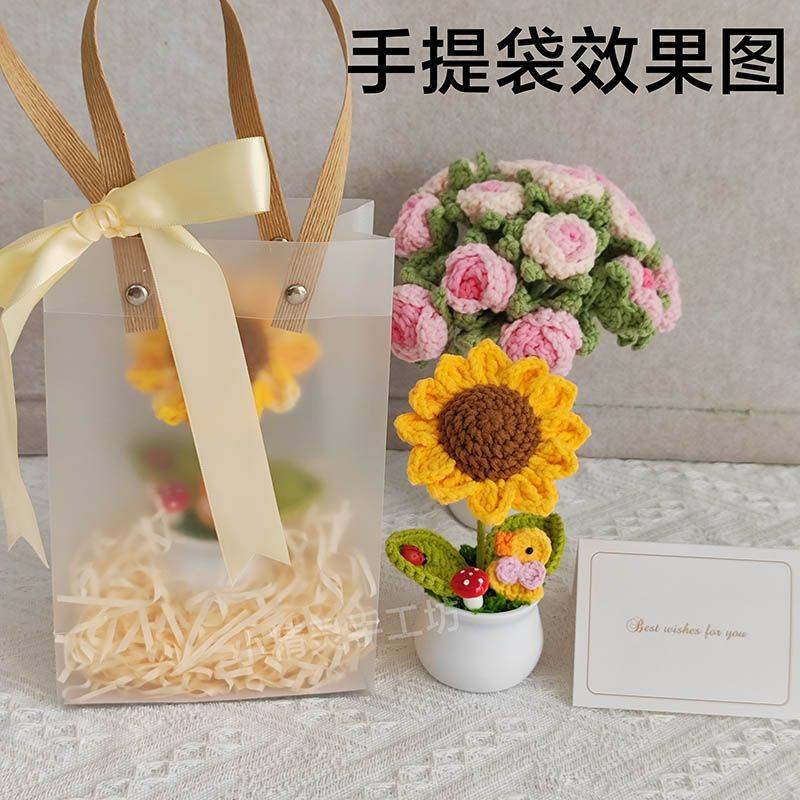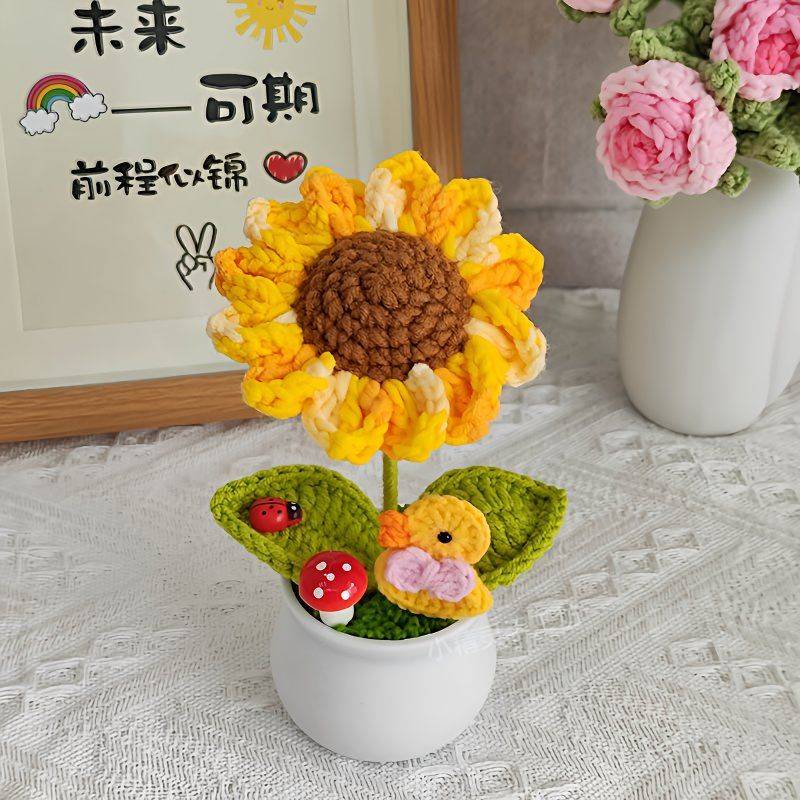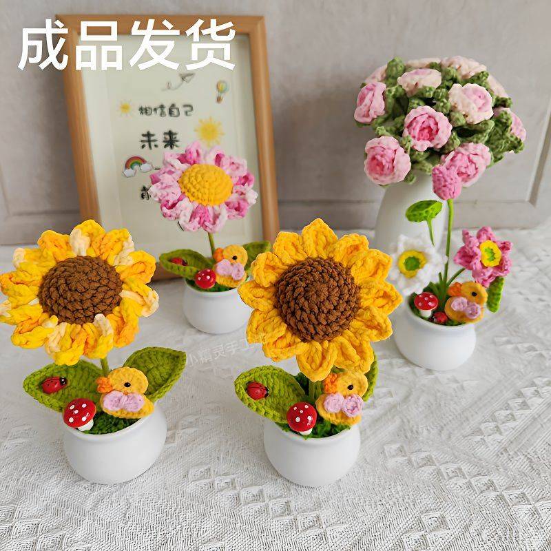 手工编织车载摆件成品手工编织盆栽向日葵手工编织桌面太阳花针织