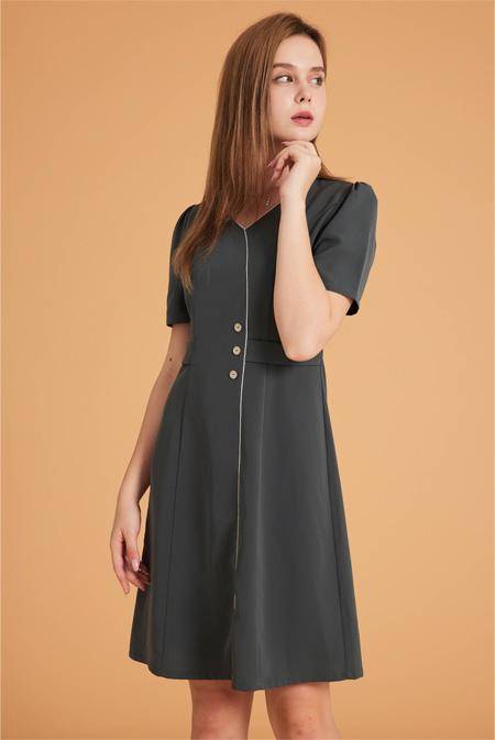 乐町气质复古连衣裙2021新款春女装奶油蜜桃蝴蝶结连衣裙