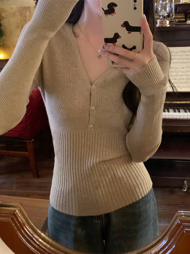v领打底针织衫女2024新款春秋季高级感修身时尚内搭长袖上衣 59.00 已售:0件