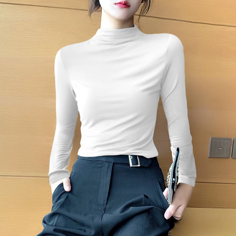 秋冬气质半高领莫代尔打底衫女秋 加绒女式修身长袖高领内搭上衣 38.00 已售:0件