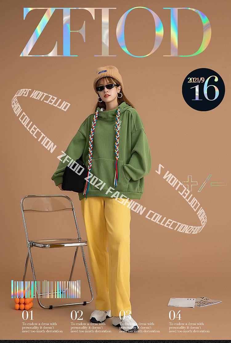 2021新款设计感连帽套头上衣卫衣显白显瘦小众有气质复古宽松学生