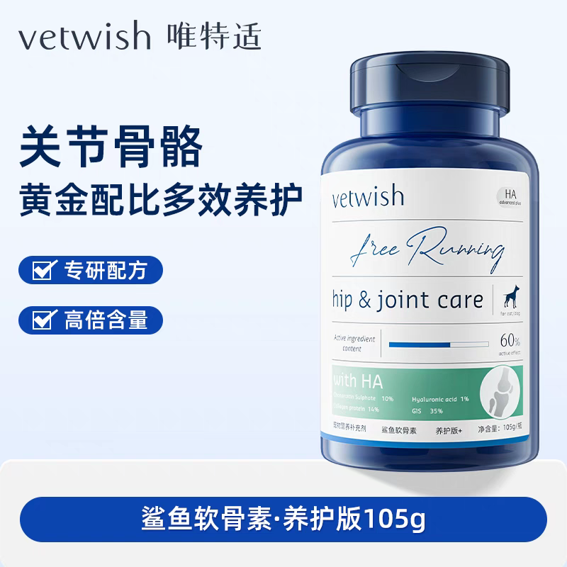 vetwish唯特适宠物鲨鱼软骨素保护关节润骨修复预防健骨补钙养护版狗狗