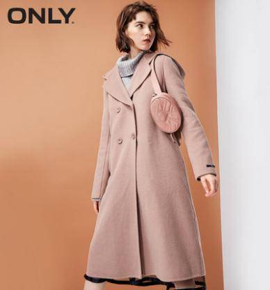 ONLY2018冬季新款双面呢中长款毛呢大衣女