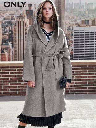 ONLY2018冬季新款长款连帽毛呢外套女