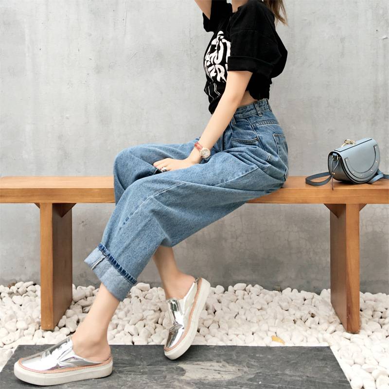 秋冬女装2018新款牛仔裤女高腰宽松文艺BF风阔腿牛仔裤 女裤工厂 130.00 已售:0件