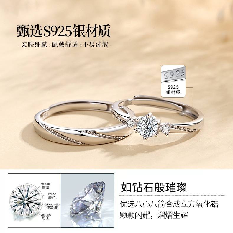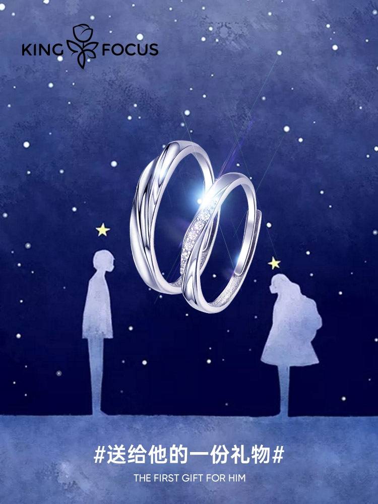 情侣戒指纯银一对男女款银对戒小众求婚婚戒开口素圈刻字生日礼物