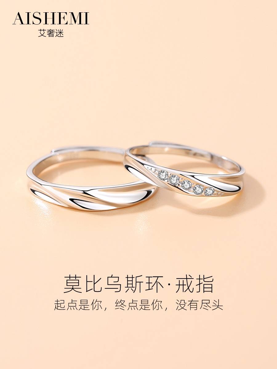 莫比乌斯环戒指情侣对戒999纯银情侣款一对七夕情人节礼物送女友