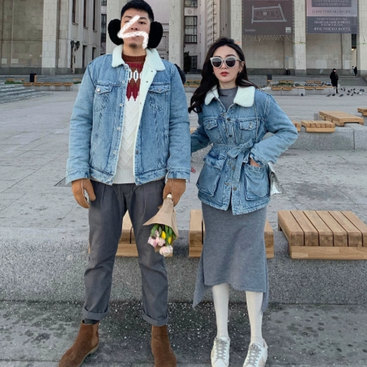 牛仔很忙全棉升级情侣羊羔毛牛仔外套女2023秋冬新款