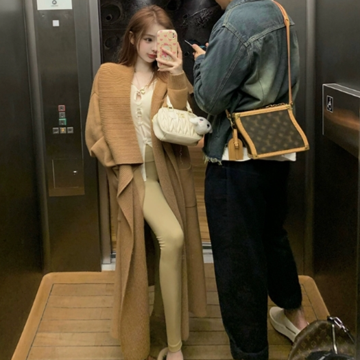 美丽诺羊毛开衫女秋季慵懒风中长款毛衣外套