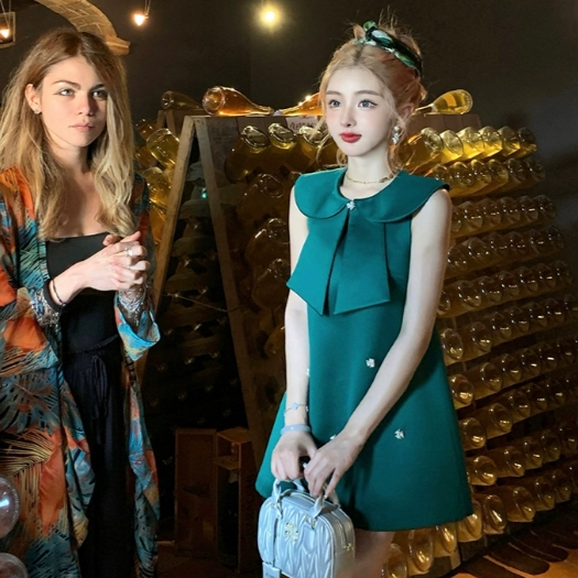 昭和千金纯手工钉钻法式娃娃领公主连衣裙气质名媛短裙