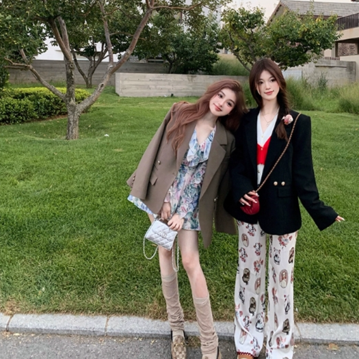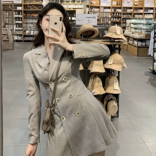 网红小西装裙百褶长袖收腰连衣裙显瘦气质秋女装