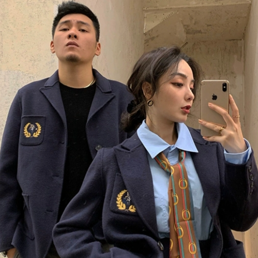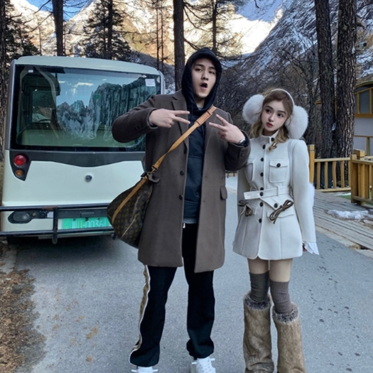 关于小熊关于你全羊毛双面呢套装女新款秋冬情侣装