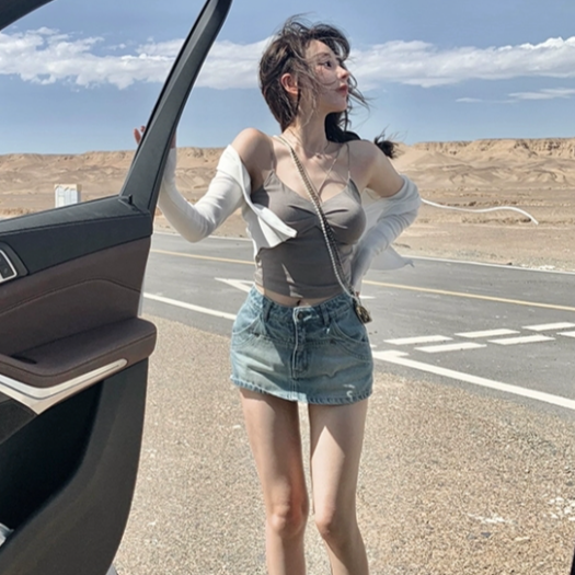 完美比例2023夏新款辣妹防走光a字牛仔裙裤包臀短裙