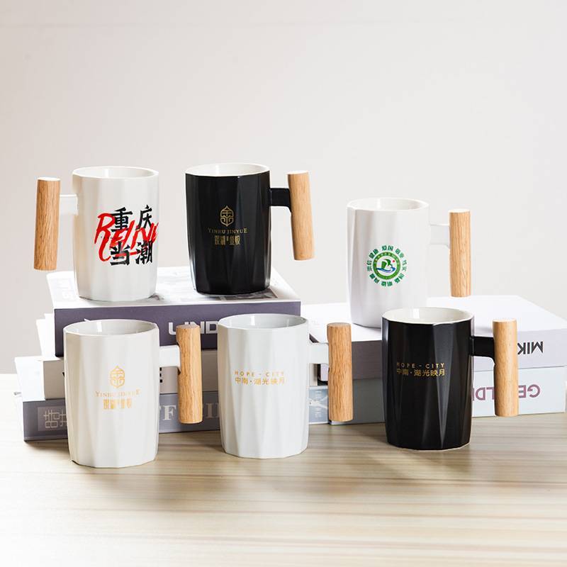 北欧简约马克杯陶瓷创意潮流韩版ins木柄带盖水杯咖啡杯