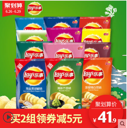 乐事薯片小吃芥末味零食大礼包批发整箱包邮混合散装组合味 199.00 已售:0件