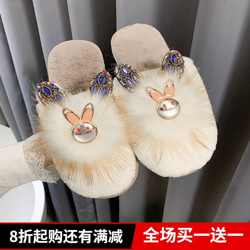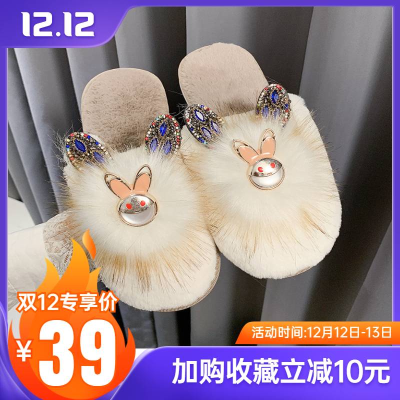 棉拖鞋女冬季居家情侣毛绒棉拖室内防滑厚底保暖月子鞋仿兔毛拖鞋