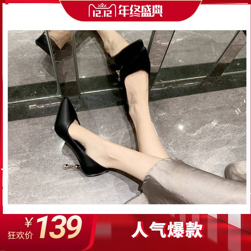 2020年新款秋季高跟鞋细跟 浅口 尖头舒适软真皮气质单鞋