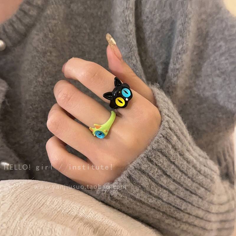 童趣可爱怪兽猫咪戒指女2023年新款潮时尚个性指环小众设计食指戒