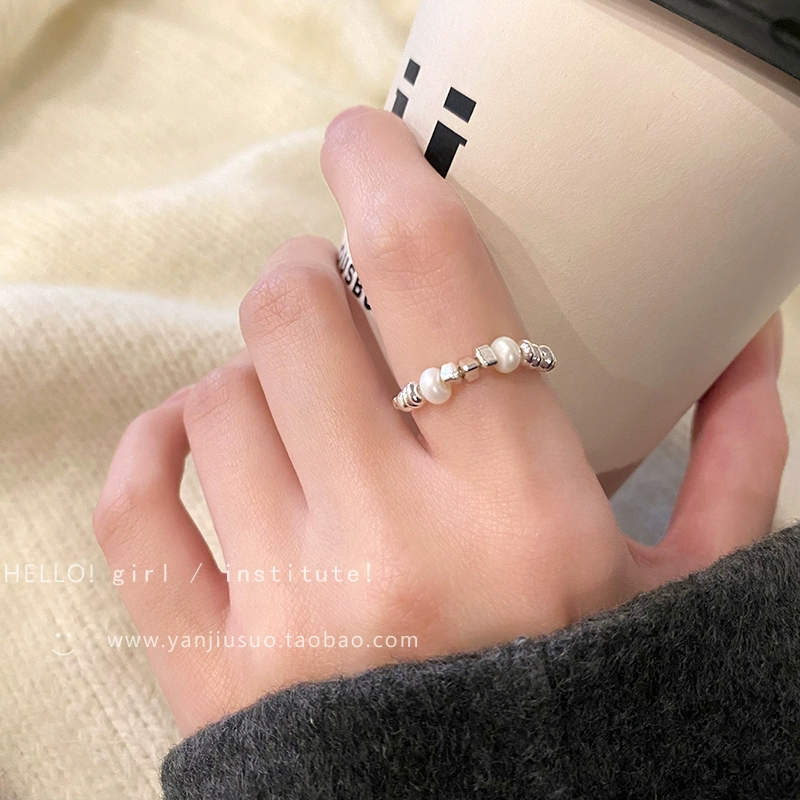 不规则碎银子珍珠戒指女轻奢小众设计高级感食指戒时尚个性指环潮