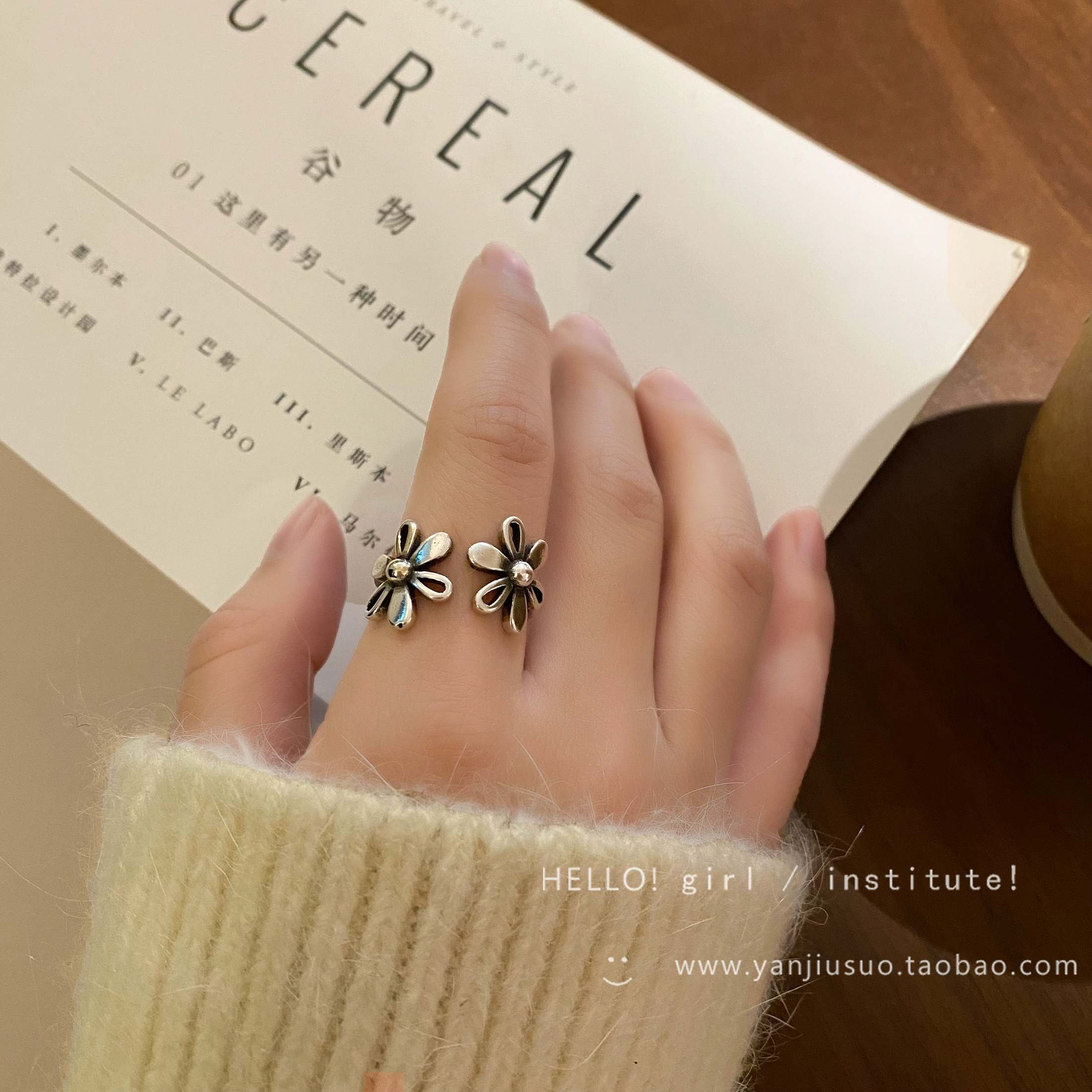 复古做旧花朵戒指女轻奢小众精致高级感时尚个性开口可调节食指戒