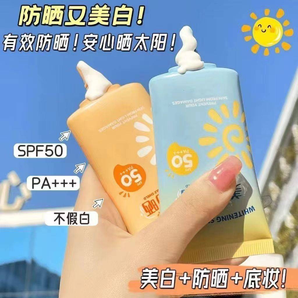 小鱼海棠推荐SPF50 美白防晒霜乳遮瑕持久隔离紫外线清爽防汗温和