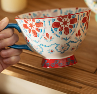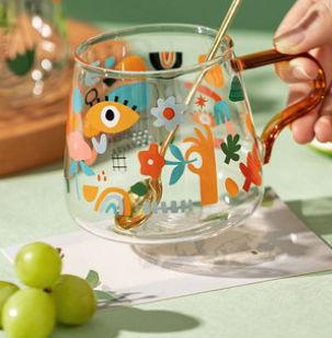 高颜值玻璃杯ins风杯子女新款高级感彩绘家用带把手水杯
